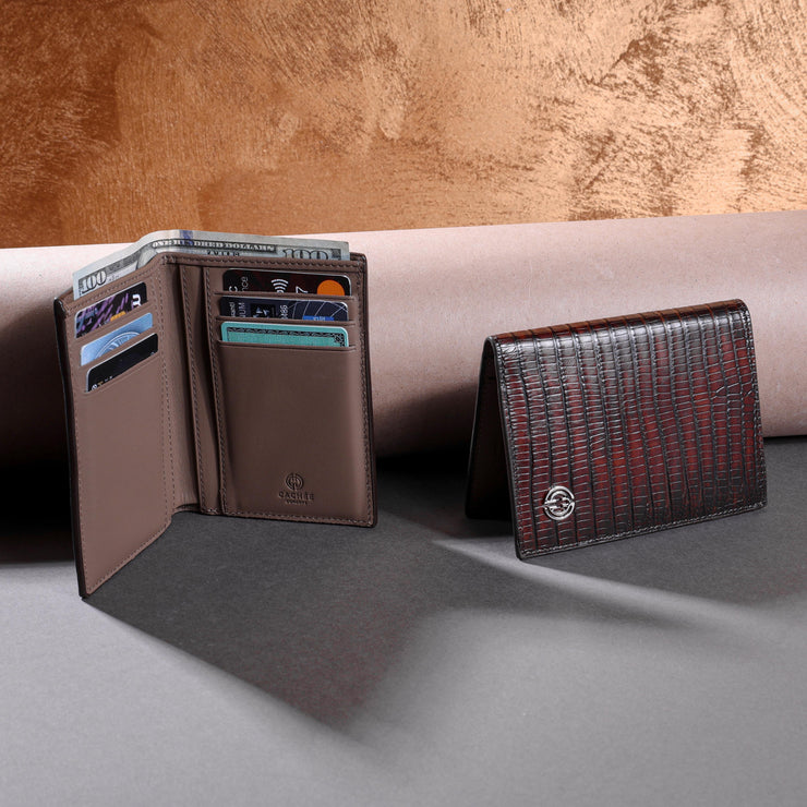 Carrying patterns from the reptile family, the Cachée Concept Ruby series sports wallet collection blends easily with your sportswear style. All of the small cells on its surface are the work of handwork. The Cachée Concept Ruby sports wallet series has a design in which natural colors such as burgundy, brown and navy blue are integrated with black. The two-tone look is the highlight of its strong style. Designed for those who are looking for assertive wallet models in sports and daily wear styles, the Cachée Concept Ruby sports wallet provides enough space for you to carry your banknotes, cards and documents with you at all times with its multiple compartments.